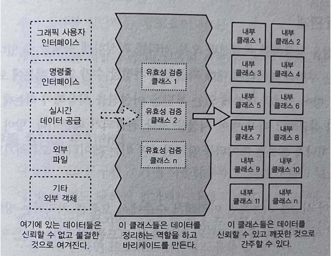 좋은 프로그램은 쓰레기값을 입력받았다고 하더라도 절대로 쓰레기를 내보내지 않는다. 차라리 ‘쓰레기를 넣으면 아무것도 안 나온다’. 혹은 ‘쓰레기를 넣으면 오류 메시지를 출력한다.’ 또는 ‘어떤 쓰레기도 허용되지 않는다’ 가 되어야 한다.